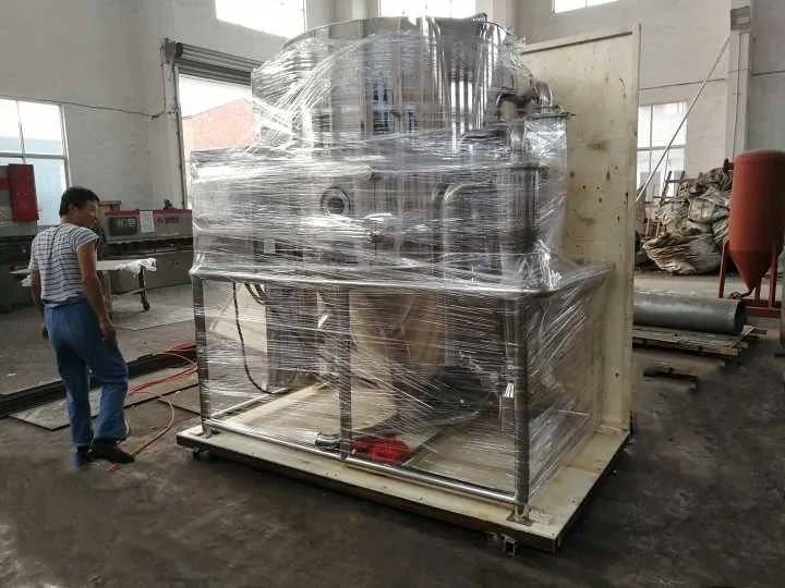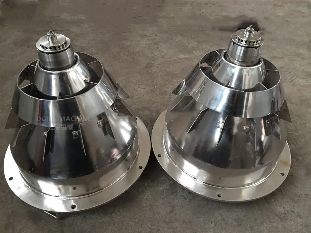5) Size design of drying chamber: The size of drying chamber is specially designed to prevent droplets sticking to the inner wall, dried powder accumulating on the cone part and guarantee enough residence time.