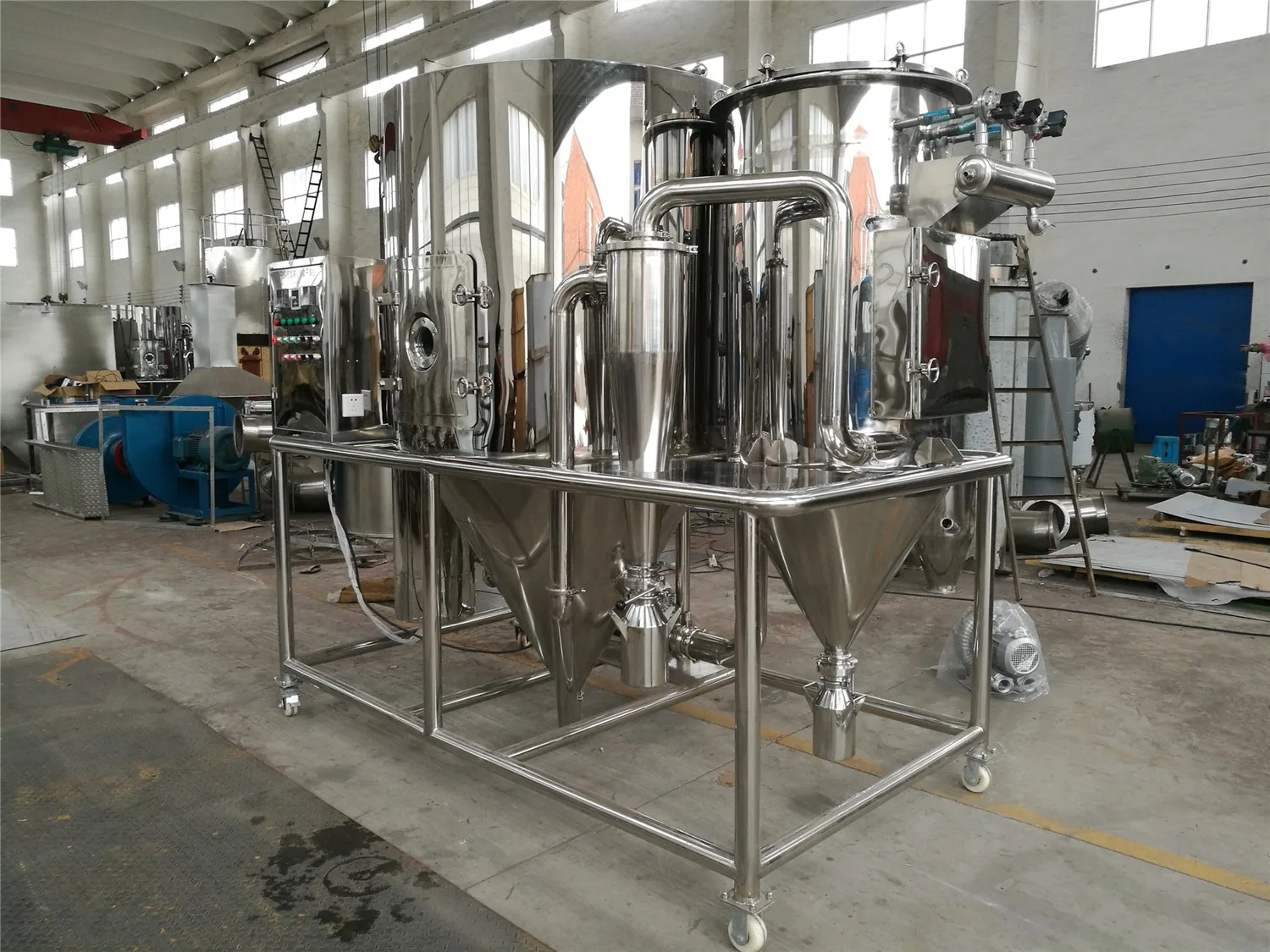 1. Drying liquid or slurry materials into dry powder 2. Atomizing type: centrifugal atomizer 3. Evaporation capacity: 3-8 kg/h 4. Heat source: steam or electricity